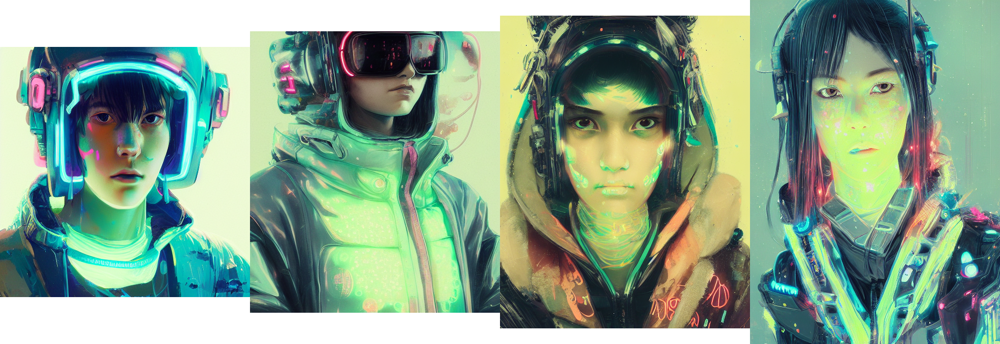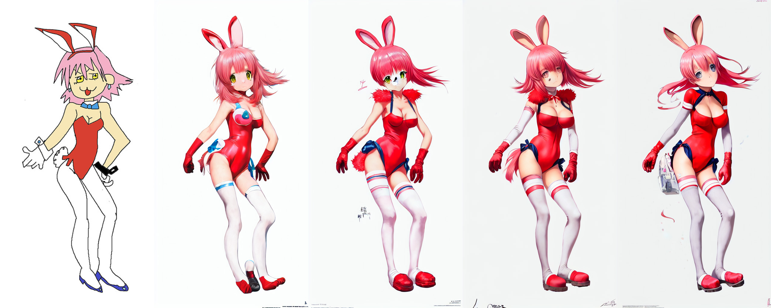 Example outputs using the above settings and prompts below (Red hair/pony not pictured)